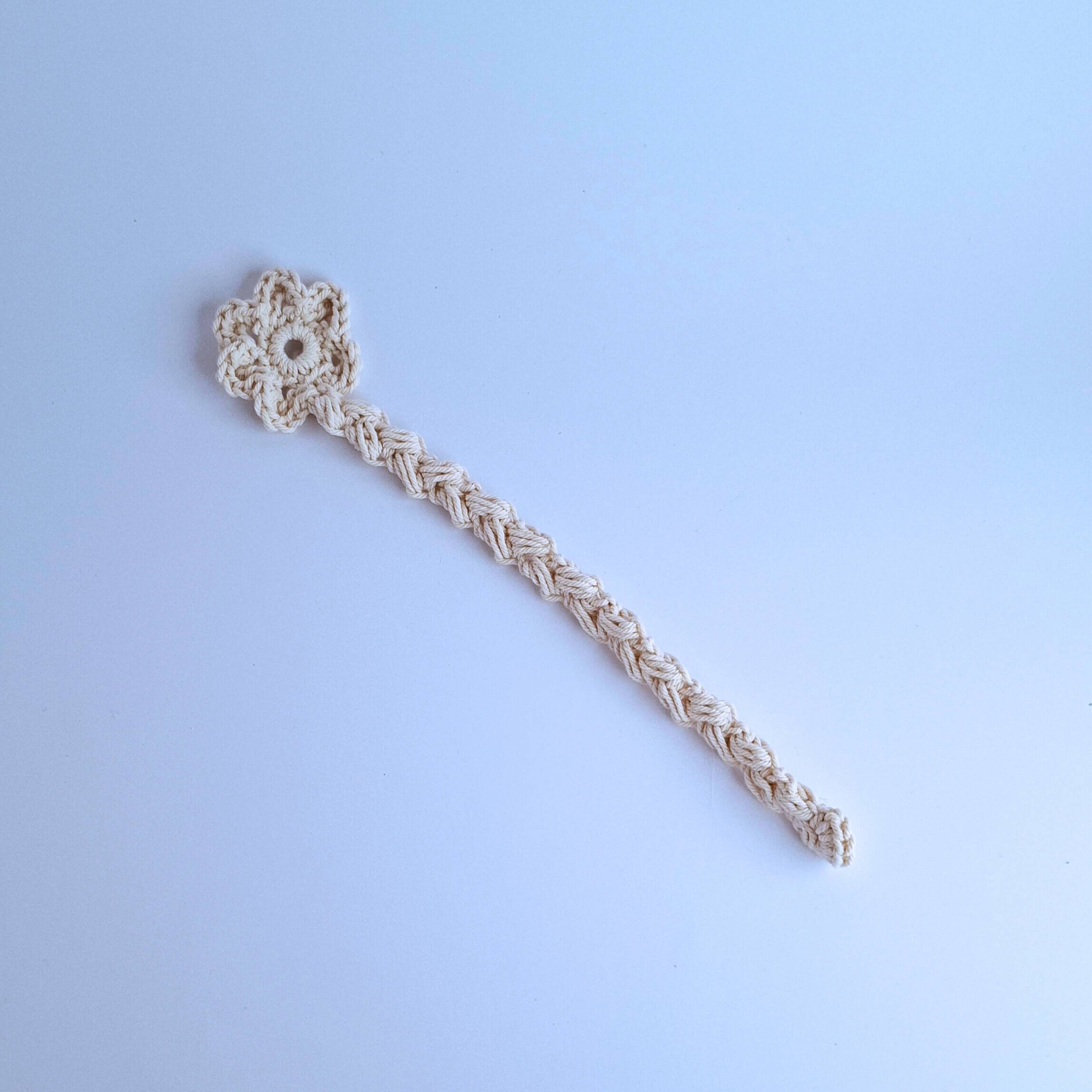 Kézzel horgolt könyvjelző, pamutzsinórból készült finom virágmintával a végén. Praktikus kiegészítő, amely stílust és természetes hangulatot visz az olvasás élményébe. Ideális apró ajándék könyvrajongóknak.